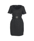 Das elegante Mini Kleid 'Araceli' von Pinko überzeugt mit seinem strukturierten Muster und figurbetonten Schnitt. Ein breiter Gürtel mit markantem Love Birds Logo akzentuiert die Taille. Der klassische Rundhalsausschnitt und kurze Ärmel unterstreichen den zeitlosen Look dieses in Italien gefertigten Kleides. Ein perfektes Modell für besondere Anlässe.