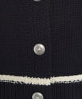 Diese hochwertige Strickjacke 'Sulcis' von Pinko präsentiert sich in einem strukturierten Design. Sie verfügt über einen klassischen Kragen, eine vollständige Knopfleiste und zwei aufgesetzte Brusttaschen. Kontrastierende Zierleisten am Kragen, entlang der Knopfleiste, an den Taschen und den Ärmelbündchen verleihen dem Modell einen markanten Look. Ein vielseitiges Stück, das sowohl leger als auch schick kombiniert werden kann.