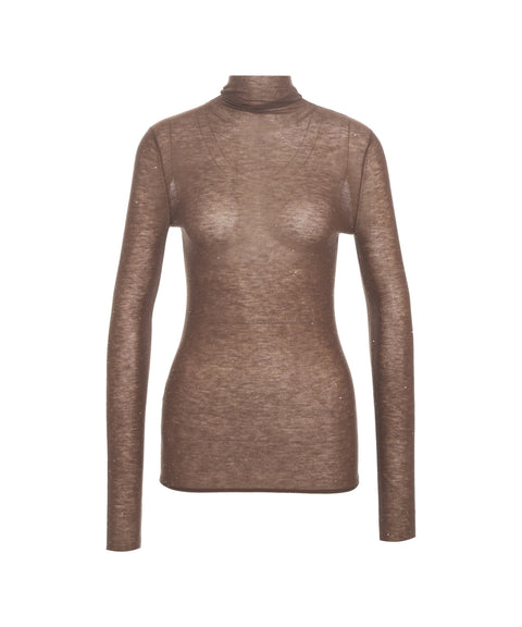 Dieses moderne Top von Pinko präsentiert sich mit einem eleganten Rollkragen und langen Ärmeln. Das semitransparente Design wird durch ein dezentes Glitzer-Finish stilvoll ergänzt. Gefertigt aus einem leichten Stricktextil, bietet es eine figurbetonte Passform und ist eine vielseitige Ergänzung für elegante Lagenlooks.