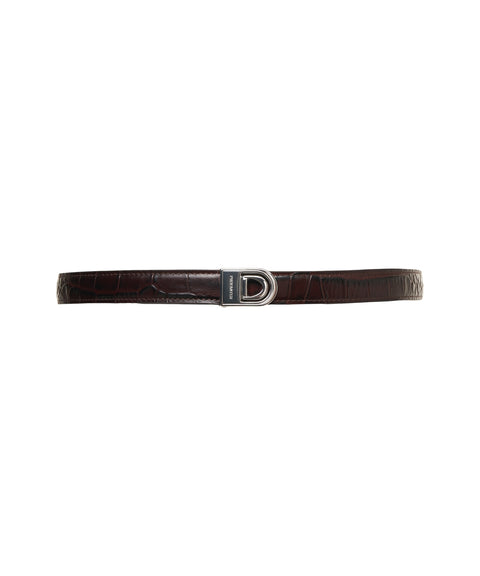 Dieser hochwertige Gürtel 'Finn' von Profanter besticht durch sein luxuriöses krokogeprägtes Leder. Er verfügt über eine markante Metallschnalle mit Logogravur, die einen eleganten Akzent setzt. Gefertigt in Italien, verkörpert dieses Accessoire zeitlose Eleganz und feine Handwerkskunst und ergänzt anspruchsvolle Outfits.