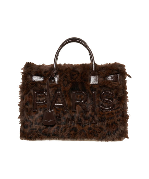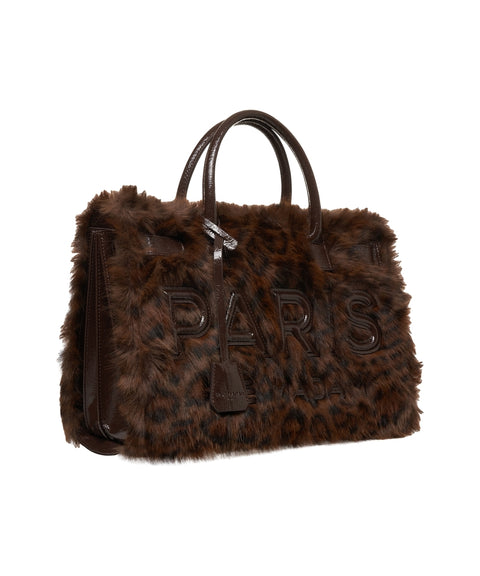 Der luxuriöse 'Alaska' Shopper von Rue Madam begeistert mit seiner weichen Kunstfelloberfläche und dem markanten PARIS-Schriftzug. Zwei glänzende Henkel und ein praktischer Reißverschluss vervollständigen das Design. Diese geräumige Tasche vereint Stil und Funktionalität und ist ein echtes Statement-Accessoire. Hergestellt in Italien.