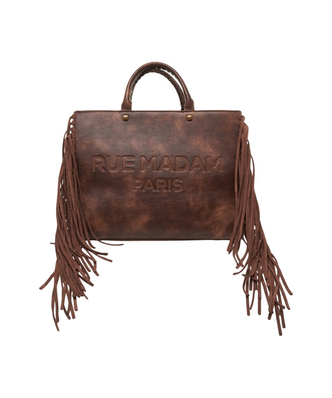 Der Shopper 'Texas' von Rue Madam präsentiert sich mit einem markanten Design, das durch auffällige Fransendetails an den Seiten akzentuiert wird. Die Vorderseite ist mit einer dezenten Logoprägung versehen, die das Markenbewusstsein unterstreicht. Diese stilvolle Tasche ist mit zwei Henkeln ausgestattet und bietet ausreichend Platz für den täglichen Bedarf. Hergestellt in Italien, vereint sie Funktionalität mit luxuriösem Flair.