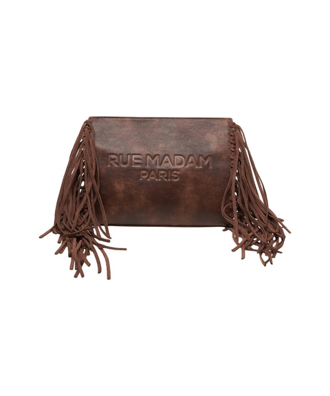 Die 'Texas' Schultertasche von Rue Madam besticht durch ihr elegantes Design aus hochwertigem Veloursleder. Auffällige Fransendetails an den Seiten verleihen der Tasche einen besonderen Charme. Das geprägte Logo "RUE MADAM PARIS" auf der Vorderseite unterstreicht die luxuriöse Herkunft. Hergestellt in Italien, ist diese Tasche ein vielseitiges Accessoire für stilbewusste Auftritte.