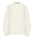 Die Bluse 'Lena' besticht durch ihr luftiges Design und eine zeitlose Silhouette. Gefertigt in Italien aus einer hochwertigen Baumwoll-Leinen-Mischung, bietet sie höchsten Tragekomfort an warmen Tagen. Filigrane Stickereien entlang der Knopfleiste und voluminöse Ärmel mit geknöpften Manschetten verleihen dem Modell eine feminine Note. Ein eleganter Stehkragen rundet den exklusiven Look perfekt ab.