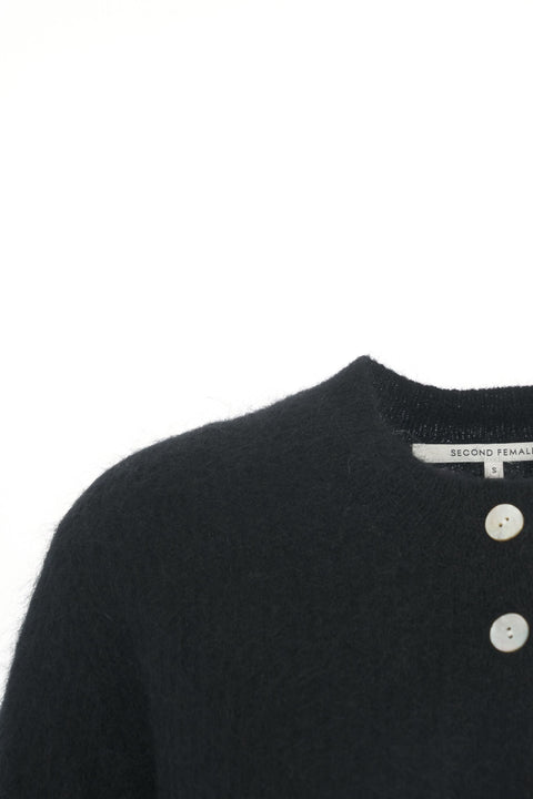 Der Cardigan 'Andrea' von Second Female überzeugt mit seinem weichen Strick und der kurzen Silhouette. Er präsentiert sich mit einem Rundhalsausschnitt und dreiviertellangen Ärmeln, die ihm eine leichte, moderne Ausstrahlung verleihen. Ein durchgehender Knopfverschluss auf der Vorderseite rundet das Design stilvoll ab. Dieses vielseitige Strickstück ist ideal für Lagenlooks.