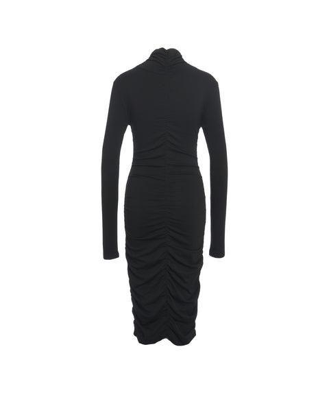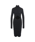 Dieses moderne Midi-Kleid von Thom Krom zeichnet sich durch seinen eleganten Rollkragen und lange Ärmel aus. Auffällige Cut-Outs an der Taille und die durchgehenden Raffungen verleihen dem figurbetonten Design eine besondere Dynamik. Ein stilvolles Kleidungsstück, das in der Turkei gefertigt wurde und perfekt für anspruchsvolle Anlässe ist.