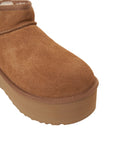 Die ikonischen UGG Stiefel 'Classic Ultra Mini Platform' präsentieren sich in einer modernen Interpretation. Gefertigt aus hochwertigem Veloursleder und gefüttert mit kuscheligem Lammfell, bieten sie optimalen Komfort. Eine markante Plateausohle verleiht diesen Boots einen trendigen Look und zusätzliche Höhe. Sie sind eine stilvolle Ergänzung für die kalte Jahreszeit.
