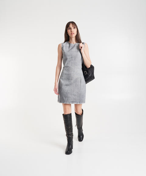 Dieses Minikleid 'Allegra' von Won Hundred präsentiert sich im modernen Used-Look. Es besticht durch einen klassischen Rundhalsausschnitt und ein ärmelloses Design, ideal für vielseitige Looks. Charakteristische Risse und ausgefranste Details an den Kanten verleihen dem Kleid eine lässige, urbane Note. Dieses Kleid vereint Stil mit hohem Tragekomfort.