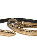 This elegant Orciani belt captivates with its noble reptilian leather look and delicate, slender shape. A sparkling, round buckle closure, completely set with stud applications, adds a glamorous accent. This luxurious accessory gives every outfit a refined touch and stylishly accentuates the waist.