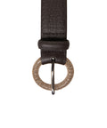 This elegant Orciani belt is crafted from high-quality grained leather. It features a striking round buckle, elaborately adorned with shimmering stud details, creating a distinctive accent. Its timeless design makes it a versatile accessory for various outfits, perfectly complementing both casual and chic looks.