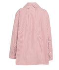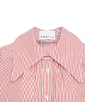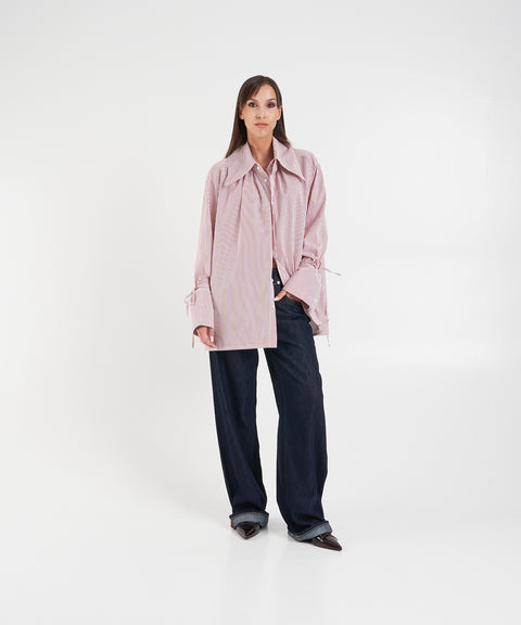 This modern blouse by Bombo Studio features a casual oversize fit. It is characterized by its striking, voluminous collar and long sleeves with wide buttoned cuffs. The full-length button closure emphasizes the clean style. Ideal for a relaxed yet stylish look. Made in Italy.