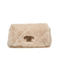 The luxurious Liu Jo 'LaPuffy' shoulder bag features soft faux fur with a quilted design. An elegant gold-toned turn-lock clasp with logo detail secures the main compartment. The bag also comes with a detachable chain shoulder strap, offering versatile carrying options. Its voluminous, puffer-like design makes it a stylish accessory.