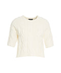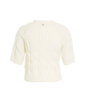 This short-sleeved knit sweater by Liu Jo impresses with its elaborate cable knit pattern. It features a classic round neckline and short sleeves. The ribbed cuffs on the hem and sleeves ensure a comfortable fit and complete the elegant design. A versatile garment for stylish looks.