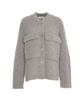 The 'Claine' cardigan by Lovechild features a luxurious knit textile with a characteristic texture. It has a classic round neckline and a full button placket. Four patch flap pockets on the front emphasize the design. This versatile model is an elegant addition to any wardrobe.