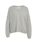 This luxurious knit sweater by MVM impresses with its elegant V-neck and striking pearl details on the sleeves. Made in Italy, it offers a loose fit for optimal comfort. The soft cashmere fabric and timeless design make it a versatile essential for any wardrobe.