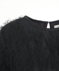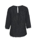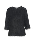 This exquisite top by Otto d ame captivates with its unique fringe texture, lending the top a dynamic and luxurious appeal. Featuring a classic round neckline and three-quarter sleeves, it is a versatile statement piece. The delicate fringes at the hem and cuffs emphasize the artistic design. It combines sophisticated design with comfortable wear.