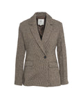 This elegant blazer is characterized by its classic single breasted cut. It features a lapel collar and flap pockets, which give the design a timeless touch. The structured material ensures a sophisticated look and high wearing comfort. Model 'Emi' is a versatile addition to any wardrobe.