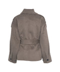 This modern jacket by Second Female presents itself in an elegant short format and loose fit. It is equipped with classic epaulettes on the shoulders and a distinctive waist belt that femininely emphasizes the silhouette. The wide collar and the subtle button closure complete the timeless design, which can be combined in many ways.