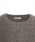 This luxurious cardigan made of brushed cashmere captivates with its soft feel and timeless elegance. It features a classic round neck and a full button closure. Its cropped fit makes it a versatile companion for stylish ensembles.