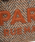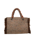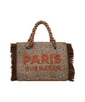 The Rue Madam 'Harris' handbag is a stylish accessory with striking fringe details on the sides. Crafted from a high-quality knit textile, embroidered lettering and glittering appliqués adorn the front. The braided chain shoulder straps accentuate the luxurious look. A perfect companion for fashion-conscious outfits, Made in Italy.
