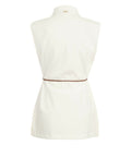 This elegant vest by Herno is crafted from a high-quality cotton blend. The sleeveless design featuring a classic kent collar and striking flap pockets adds a timeless touch to your ensemble. A slim waist belt creates a feminine silhouette, while the two side slits ensure ease of movement. Made in Portugal, this piece combines luxury with contemporary sophistication.