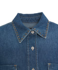 This blouse from 7 For All Mankind features a classic design. It is characterized by a collar, a full-length button closure, and long sleeves with buttoned cuffs. Two patch chest pockets and subtle stud details on the collar and pockets complete the design. A rounded hem provides a casual silhouette.