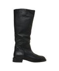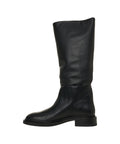 These elegant riding boots from Copenhagen are crafted from high-quality smooth leather and reach to the knee. Their clean design, featuring a low block heel and a robust profile sole, gives them a classic aesthetic. The subtle brand logo on the side highlights their exclusive origin. These boots combine comfort and timeless style, perfect for sophisticated outfits. Made in Portugal.