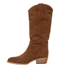 These Texan-inspired boots, crafted from premium suede leather, combine distinctive Western character with timeless elegance. The pointed toe enhances the feminine silhouette, while the block heel ensures stability and all-day comfort. Decorative stitching details highlight the authentic design and add a refined touch. Made in Italy, they reflect outstanding craftsmanship and superior quality.