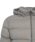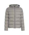 This high-quality down jacket by Herno features a quilted structure and a warming down feather filling. It has a practical hood with drawstring and a continuous two-way zipper. Side slip pockets complete the functional design. An essential model for cool days, combining comfort and style.