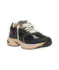 These modern 'Fugitive' sneakers by Crime combine a dynamic aesthetic with high wearing comfort. They are crafted from a versatile material combination with breathable mesh and shiny accents. The distinctive profile sole ensures a contemporary silhouette. Made in Italy, these shoes offer an ideal balance of style and functionality for everyday wear.