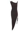 This elegant midi dress by Elisabetta Franchi impresses with its sophisticated, asymmetrical design. The artistic draping at the waist and the striking side slit give the model a feminine silhouette. An asymmetrical neckline perfectly rounds off the luxurious overall look. Made in Italy.