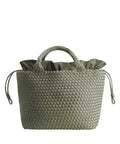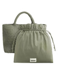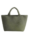 This elegant handbag stands out with its modern woven design. Made of neoprene, it offers ample space for all your essentials. The model features a practical shape and sturdy handles, perfect for everyday use. A versatile and refined accessory, ideal for completing any look.