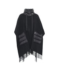 This luxurious cape by Herno combines elegance with modern design. It features a soft wool and cashmere blend paired with characteristic quilted down sections on the patch pockets and high collar. A drawstring at the collar and a fringed hem complement the stylish appearance. Crafted in Italy, this versatile piece is a sophisticated addition to any wardrobe.