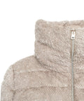 This stylish down jacket from Herno features a luxurious faux fur outer material and a warming down feather filling. The quilted design is complemented by a high stand-up collar and a full zip closure. A modern and comfortable choice for the colder season. Made in Romania.