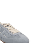 These luxurious sneakers from Hogan are crafted from high-quality suede, offering a sophisticated look. They feature a durable lug sole and a subtle logo design. The comfortable round shoe shape and contrasting heel detail complete the design. Made in Italy, they embody the brand's craftsmanship and style.
