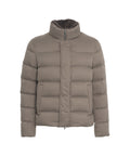This lightweight quilted down jacket from Herno features a distinctive stand-up collar, lined with soft faux fur on the inside. It has a full-length zipper elegantly concealed by a hidden snap-button placket. Side pockets complement the practical and stylish design of this warming outerwear piece.