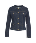 This Maximilian denim jacket presents itself in a timeless design. Crafted from robust denim fabric, it features a classic round neckline and gold-colored buttons. Four front patch flap pockets and decorative stitching stylishly complete the design, lending it a casual elegance. A versatile everyday essential.