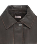 This modern jacket by Liu Jo White is crafted from faux leather and captivates with its casual chic. It features a classic collar, a full button placket, and distinctive epaulettes on the shoulders. Two patch flap pockets on the front emphasize the functional style. A versatile essential that elevates any outfit.