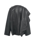 This Viktoriachan jacket 'Araki' is crafted from high-quality smooth leather, offering a luxurious feel. It features an innovative asymmetric design with wide sleeves, creating a modern, relaxed silhouette. The crew neck and elaborate seam details emphasize the avant-garde style of this distinctive statement piece.
