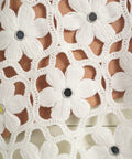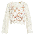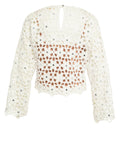 This exclusive crochet sweater stands out with its intricate floral pattern and delicate craftsmanship. Integrated mirror accents add a luxurious touch to the design, while the round neck creates a timeless silhouette. A matching underlayer perfectly complements the semi-transparent knit fabric, ensuring a premium feel.