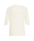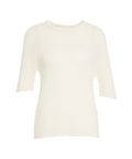 The 'Cecelia' knit sweater by Lisa Yang is a luxurious garment for the modern woman. It features a classic round neckline and elegant short sleeves. The fine knit quality ensures a comfortable feel and a timeless aesthetic that can be combined in many ways.