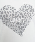 This T-shirt by Liu Jo Denim features a classic round neck and short sleeves. A striking detail is the large, heart-shaped application on the front. This displays a modern leopard print pattern and the subtly integrated brand logo, crafted from sparkling rhinestones. A versatile basic with a luxurious accent.