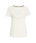 This Liu Jo Sport t-shirt features a classic round neck and short sleeves. A striking logo with rhinestone application on the front adds a luxurious touch to the top. The comfortable design makes it a versatile essential for stylish leisure looks.