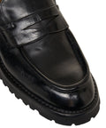 These high-quality loafers from Green George feature a classic penny loafer style. Crafted from durable smooth leather, they offer a timeless look. The striking profile sole provides a modern aesthetic and enhanced wearing comfort. These shoes are Made in Italy and represent excellent craftsmanship.