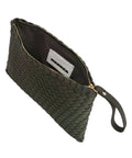 The elegant clutch impresses with its intricately woven design, providing a luxurious texture and timeless appearance. Its compact, rectangular silhouette makes it the ideal companion for evening occasions. A practical wristlet strap offers comfortable carrying, while the secure zip closure keeps your essentials safe.