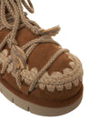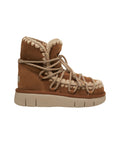 Mou's 'Scubedoo' boots are crafted from soft suede and feature distinctive, handcrafted crochet stitching. Their characteristic lace-up closure and cozy lambskin lining provide warmth and comfort. The elevated platform sole offers additional protection and a modern look, making these luxurious boots the perfect choice for cold days and stylish appearances.