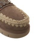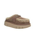 These luxurious clogs by Mou are crafted from elegant suede leather, offering supreme comfort. Characteristic features of the model include the striking braided detail on the upper and the elegant logo detail on the strap. The distinctive platform sole gives the shoe a modern silhouette. Internally, the clogs are softly lined, ideal for stylish appearances.