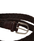 This high-quality Orciani belt is crafted from pure leather and features an elaborate, braided design. It offers a luxurious texture and a timeless aesthetic. A classic polished metal pin buckle perfectly complements this stylish accessory. Made in Italy, this belt embodies the exquisite art of Italian craftsmanship and quality.