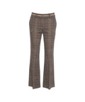 These elegant 'Francoise' pants feature a fashionable flared design and a classic houndstooth pattern. They come with a regular waistband and practical side pockets. The wide leg cut provides a stylish silhouette for any outfit. A versatile garment for sophisticated looks.