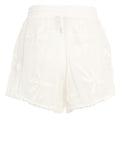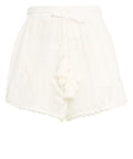 Crafted from pure cotton, these shorts stand out with their delicate texture and intricate detailing. An elasticated waistband with a drawstring and decorative tassels ensures a personalized fit and a refined look. The artistic embroidery and scalloped hem complete the sophisticated design of this summer essential.